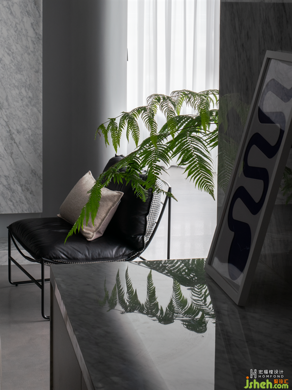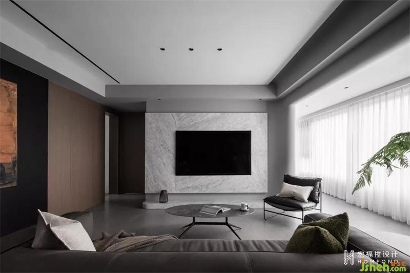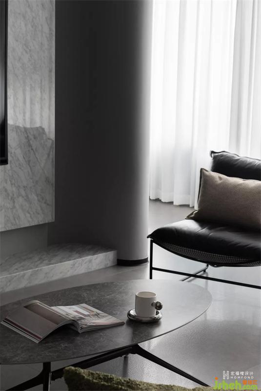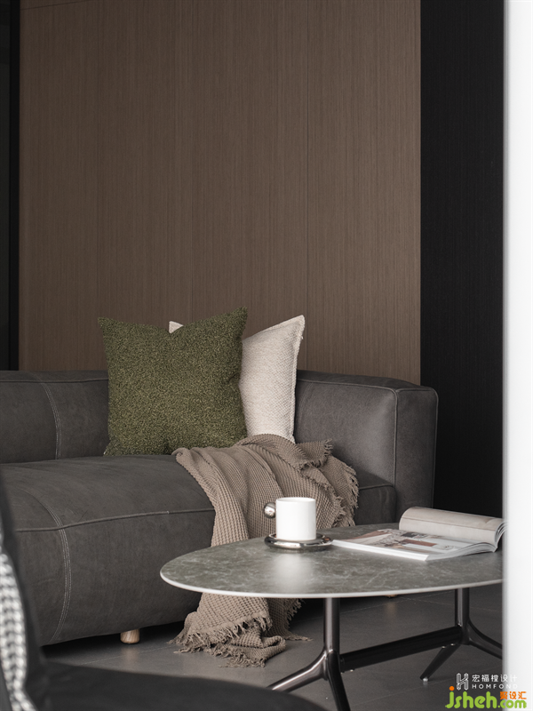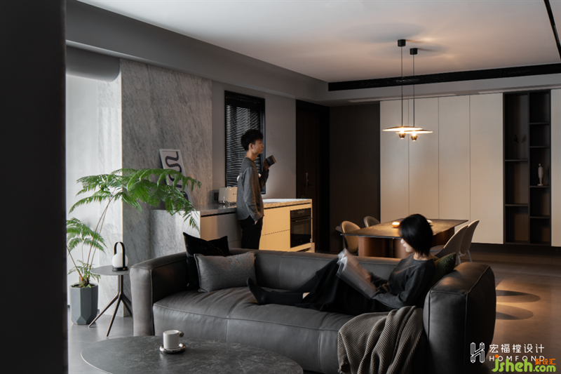 以喜爱的现代黑白灰作为色彩基调,低调的木质元素、哑光地砖、柔软皮革递减冷感,丰富空间质感。公共空间无任何阻隔与壁垒,以更包容的身份呈现,充满自由与互动。倾写出(关于生活关于爱情关于自我认同)的空间描述,将现代年轻人活跃于网络的内心拉回现实,营造出轻松舒适的居家艺术氛围。