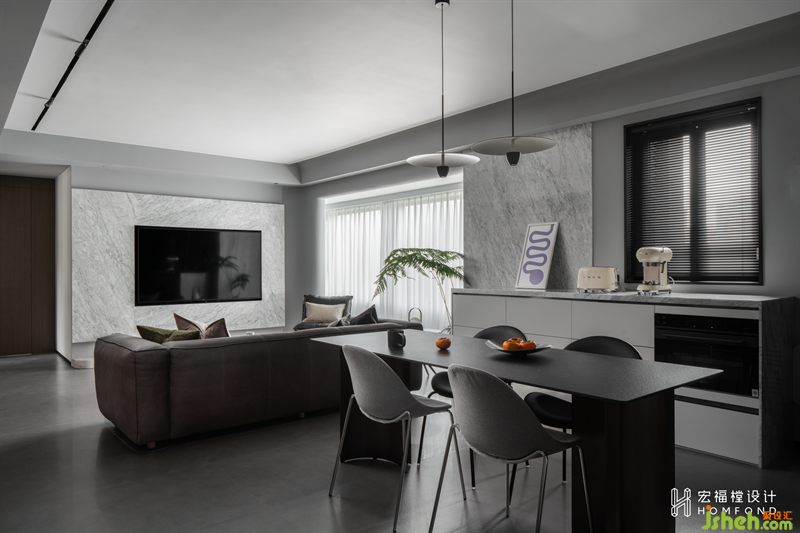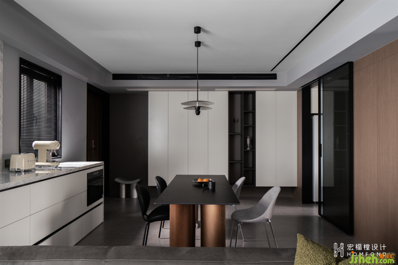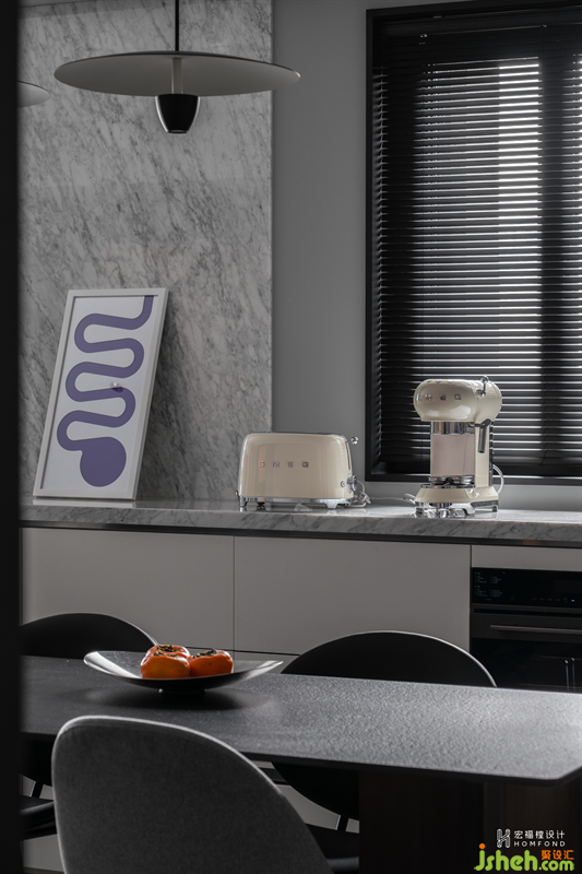 定制餐厅边柜,充当属于两人的咖啡吧台,这样贴近生活的居家设计让心情倍感惬意,是获取幸福的重要途径,也是设计师传递给居住者的重要概念。