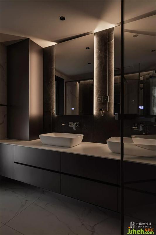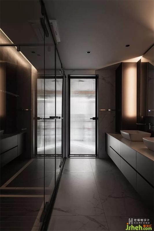 如何通过设计让居住者的日常生活毫不费力,是一个非常值得深思和考虑的重要问题。原始主卫有足够的空间使用,但我们根据对屋主的了解,只提取最重要的生活需求。在进行干湿三分离后,直接将其一分为二,改造为从另一侧进入的次卫空间,方便孩子们使用。