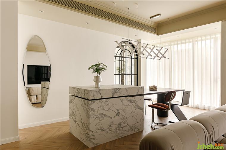 #①:本案本身是精装房,女业主喜欢轻复古,法式线条,希望家里要有深色的高级感,却又不能过于冰冷,昏暗。