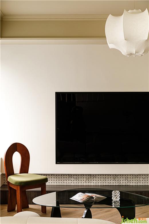 房间内部利用花色壁纸和黑色柜体以及圆形造型,家装设计打造了比较浓郁的复古风,同时业主家有宠物,所以在此处也专门为宠物设计了一个独立空间;