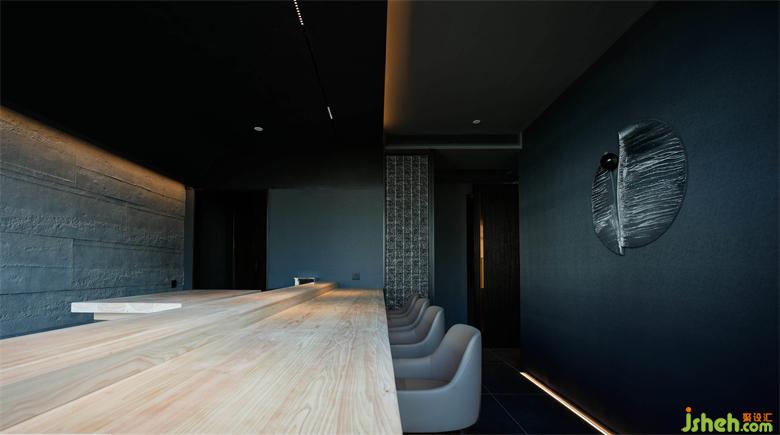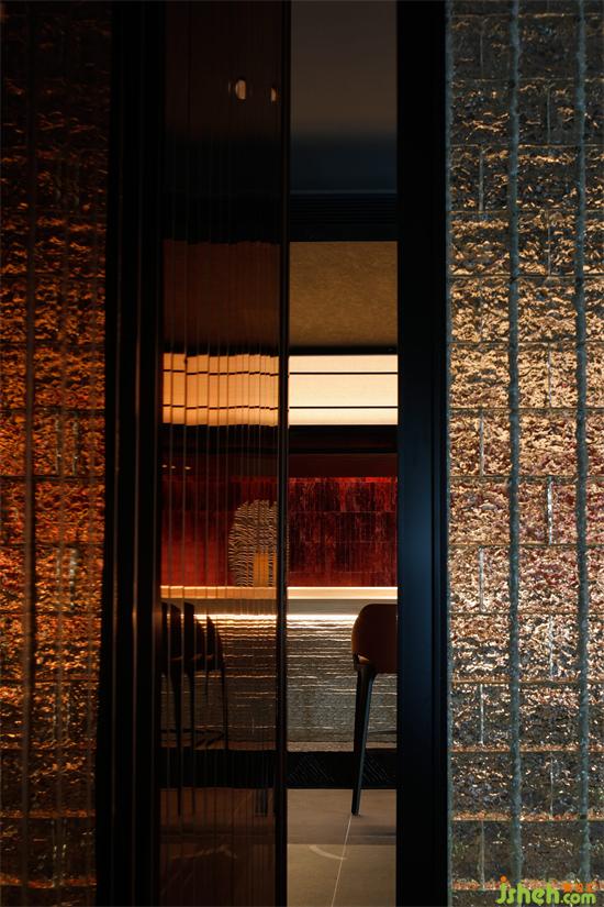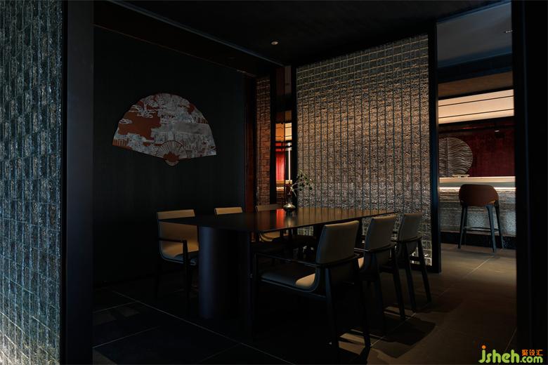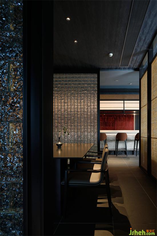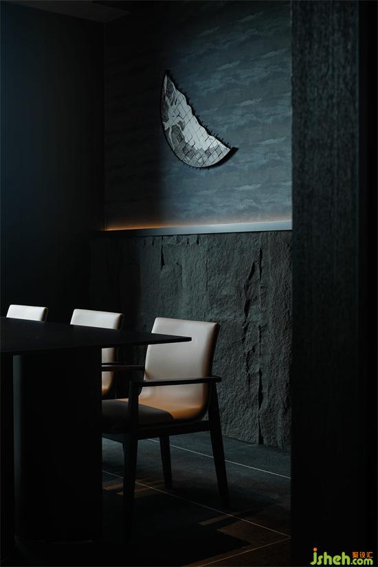 日料餐厅设计通过“在空间内部制造空间”的方式,将一个个空间嵌入其中,不同高度的空间层次,不同肌理的材料碰撞,不同方式的灯光布置,不同维度的人流动线,以及步移景异的观赏方式在开放和封闭间相互切换,自有一种无声的神秘感。