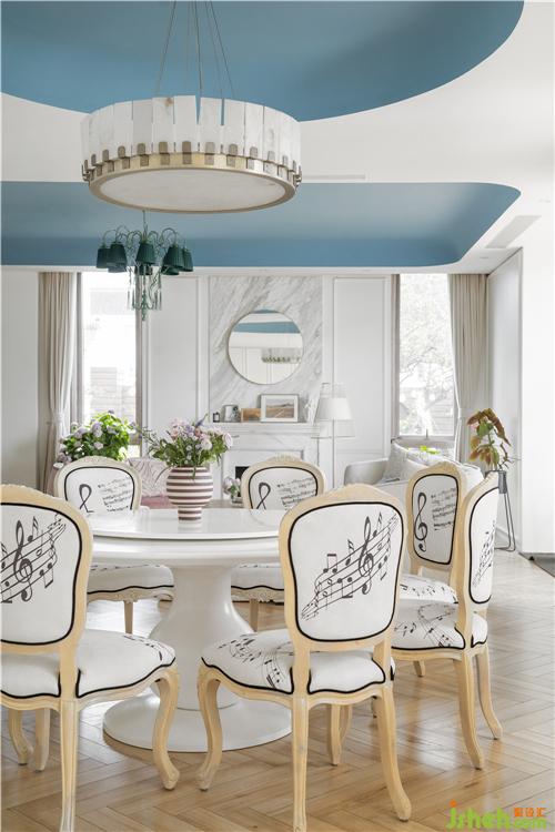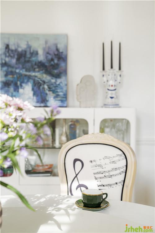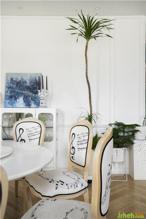 定制餐椅选择了有着五线谱与音符的个性面料,保有法式家具浪漫的调性的同时,也给家里带来了美妙的韵律感。
