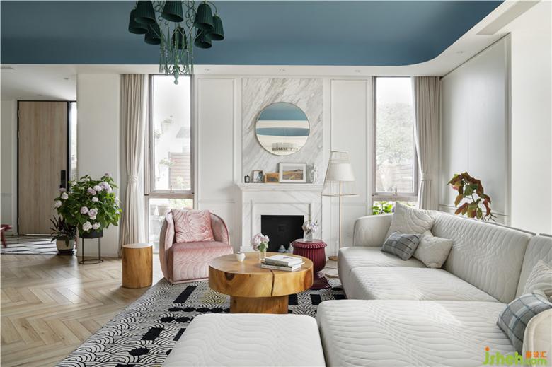 对“大海”的情有独钟,来自Ada多次携家人一起海岛度假的经历,海风拂面的滋味每次都会触及她心底最柔软的部分。别墅设计客厅以蓝白色为主调,像极了爱情海岛屿的经典配色。曾经的半窗都改造成落地窗,最大限度引入屋外的园景和天光。