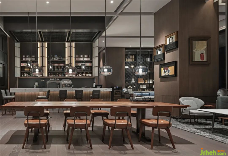 大堂侧面的HOLA bar打造了一个集咖啡、精酿、文化等现代生活方式于一体的多元共享社交空间,是商务、休闲、移动办公的个性之选。设计融合了工业型格与复古轻奢创意元素,将复古重现,结合当地成都文化,以小景细节呈现,打造轻松现代感的社交场所,为“旅享家”打造新型社交体验。