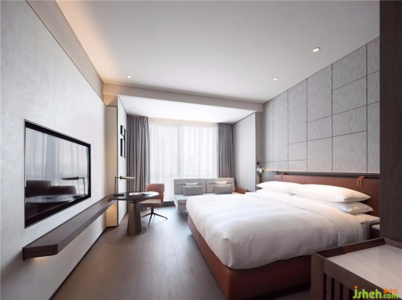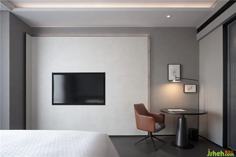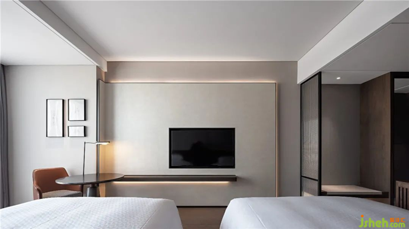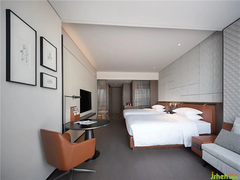 在空间细节中植入当地特有文化,酒店设计以“现代都市墨客之情调”代入产品思维做品牌迭代,为万豪星级服务文化落到实处,为用户营造家一般的入住体验。软装采用品质橘调反映当代客群的青春活力,与简约朴质的空间形成有趣碰撞。