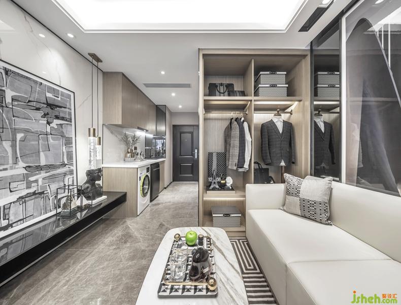 在这里,室内设计师将质感、思维几何、科技感与轻奢主义从人物角度蔓延至空间中,为跻身于金融行业的30岁成功男性定义生活品质。他注重搭配穿着、酷爱高奢高定系列,对自己的生活有非常严谨的要求和态度,而行业属性也促使他更关注细节。