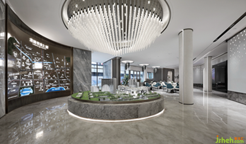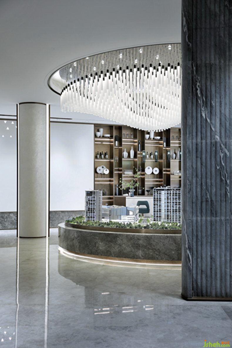 杭州龙湖杭州紫金上城售楼处,对于当代建筑设计而言,在空间设计中卸下了直横直竖的线条枷锁,以曲线贯穿整体,大胆运用几何元素和流动造型,让生命力灵活展现在每个功能区域;在杭州西湖这座蓄存着中华文化古典,内涵盛大外显温情似水的城市,让人感知空间“里仁为美”的东方美学。
