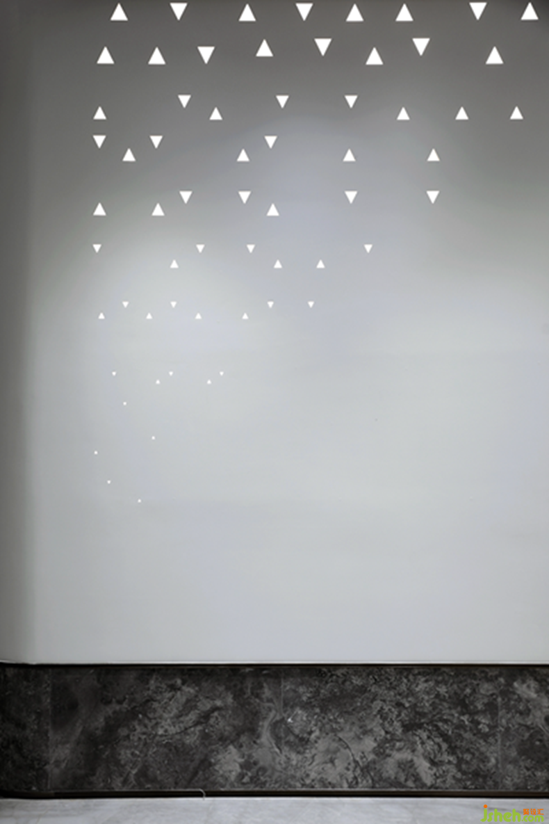 曲线是近于这个世界最曼妙的形状,极简的一笔,构成整个设计,为了体现其变化性,设计师将墙体、沙盘与不规则几何元素融合,并以白色为“幕布”纯化视觉,共同在绚烂的灯光下,达到独特的观赏效果。