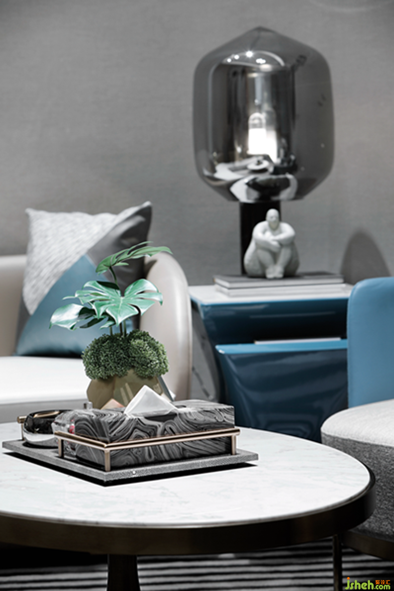 VIP洽谈区的装饰艺术画选自加拿大摄影师Paul-EmileRioux的“Landcuts系列”摄影作品,设计师将概念进行了延伸,让城市文化与西湖水、沙发弧形曲线、地毯纹理等元素融合共生,在当代浮于表面的艺术创作里,用真正的作品,还原城市历史所不可或缺的人文气息。会所设计