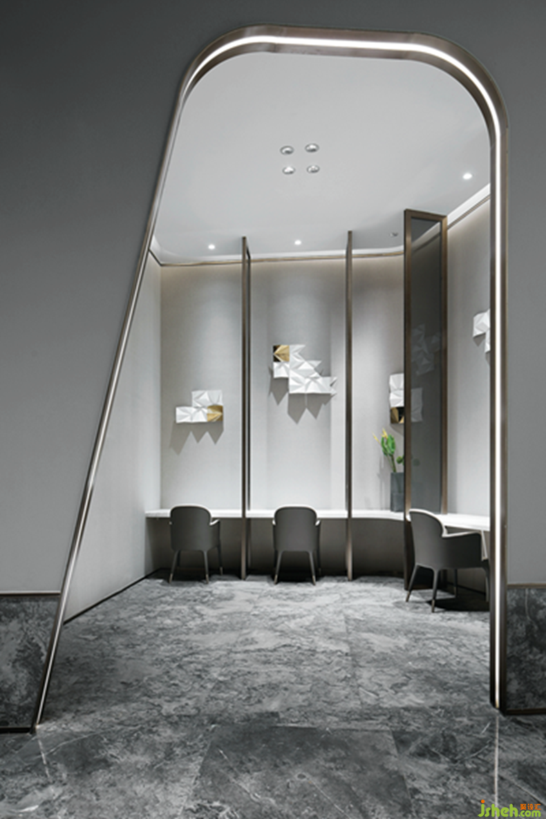 与开放式公共空间不同的是,半私密空间的整体设计在不同路径中反映了空间艺术的多维表达。
