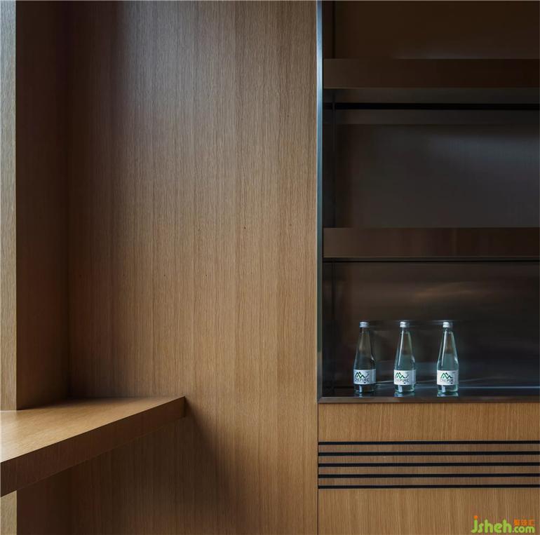 室内设计以温润的木制和黑色硬质铺装为主色调,淡绿色色调与之融合,营造出静谧安然的休憩之境。