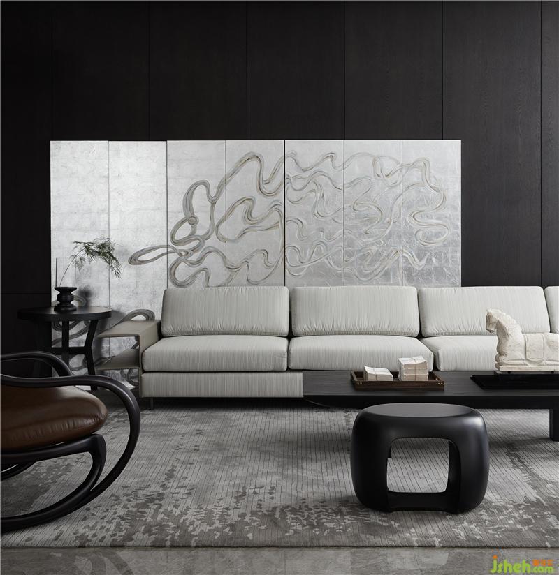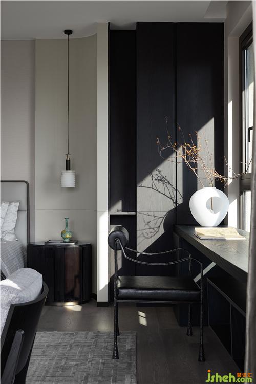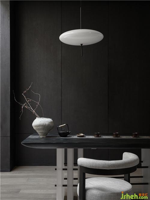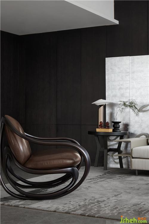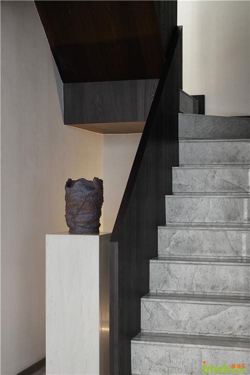 深色木饰面的稳重与深沉在不同层级空间中铺陈、渲染,沉淀为一种“显于形”的气质表达,犹如夜色中幽暗的水面,静谧之下,自有一番潜藏的、涌动的磅礴,成为空间的底色。