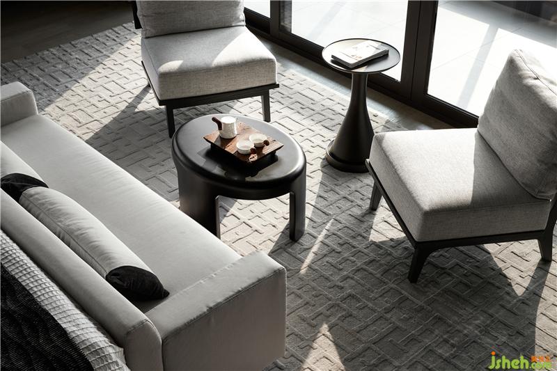 细腻如装饰石膏的参差纹路,轻巧如织物密实的工整走线,温厚的木质,光洁的皮料,天然纯粹的石材,在共同的组合、平衡之中,给予了我们这座自然生活的向心之所。