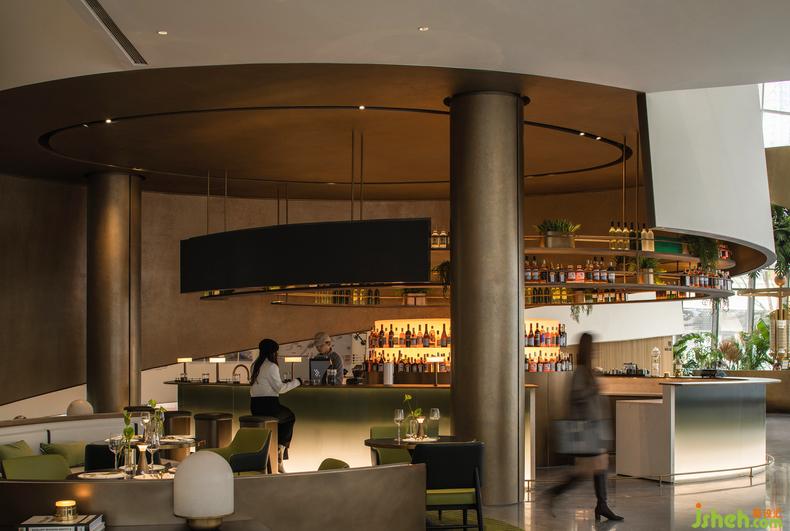 在几何块面的现代包裹之后,复古的黄铜与绿调将人们带入了丰盈而舒缓的就餐氛围之中。体验中心设计以TOD轨道新城为中心,武汉万科柏叶新城在单纯的销售语境之外,更多的通过复合场景的不断叠加,带来了多元化感受与体验的舒畅氛围。