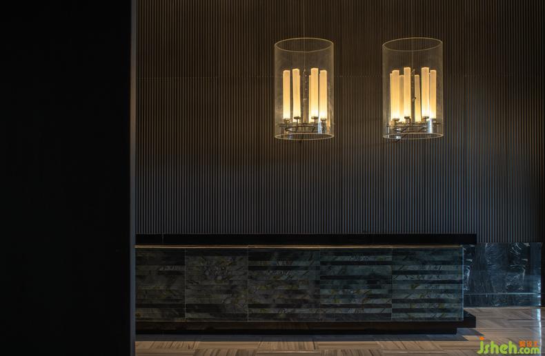 售楼处设计高达7m的接待前厅,以超越常规体验中心的尺度,为空间营造了极度敞朗的酒店归家般感受。顶天立地的廊柱,其圆锐的角边、凹褶的样式均取自老厦门记忆中洋楼、花砖、木雕元素。