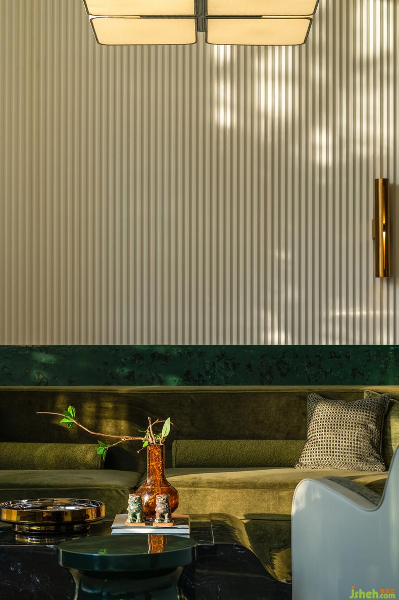复古的绿调,与天然大理石漫漶的纹理营造的“暗面”,令空间不断消隐、下沉,将显于形的器物与光影表达,带入人们视线与感受的中心。