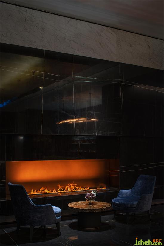 空间的自然转换,在于木材与石制在不同板块的咬合衔接,营销中心设计在于与器物的匹配落位,也在于光晕、阴影的适逢其时,情绪制造的恰到好处。
