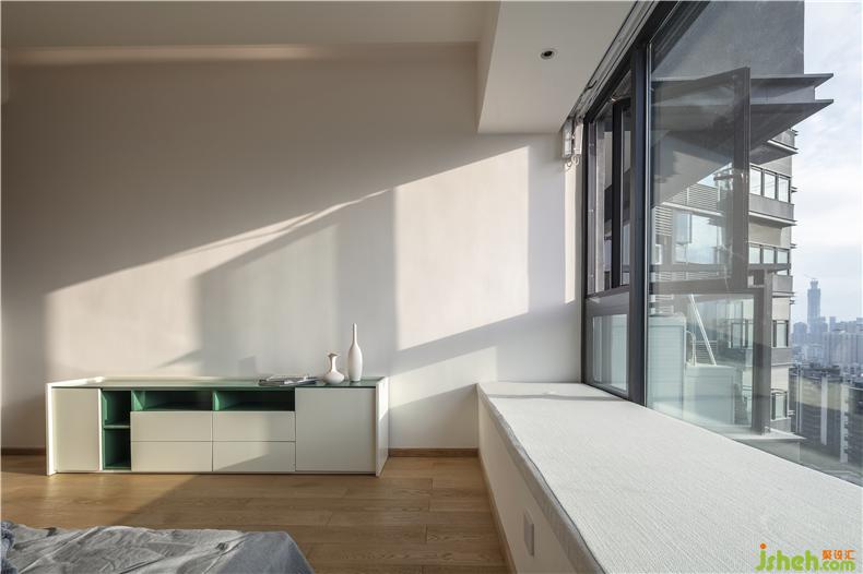 这次的设计里“借”了很多光,采用大落地窗的形式,让窗外的好景成为家中天然的装饰画。