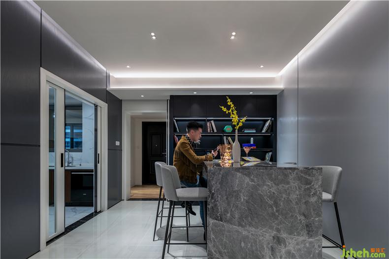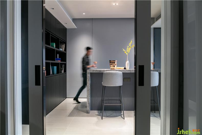 拉门是餐吧和厨房友谊的关键桥梁。当“硝烟”开始弥漫,两扇拉门成功阻断烟火气。室内设计师