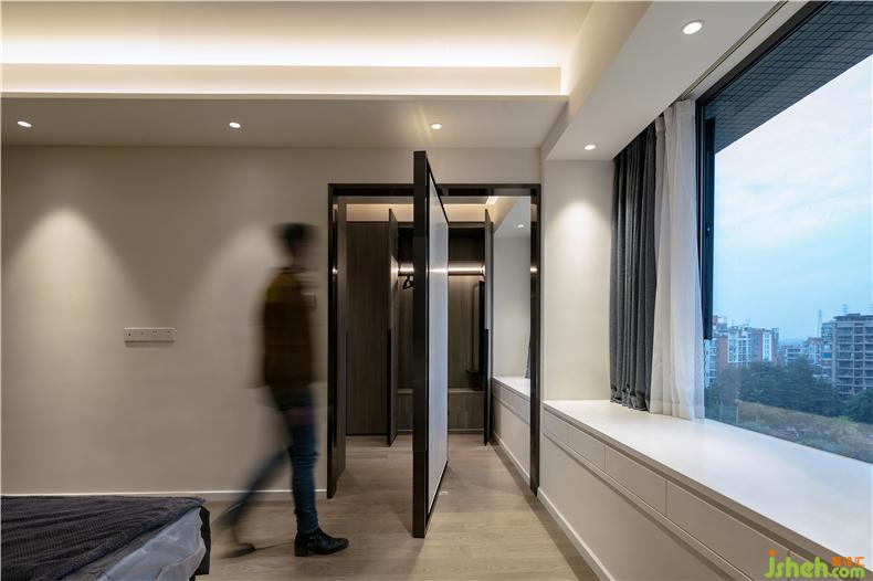 主卧里藏着我们的秘密基地,旋转门给静谧的空间增添了活力。