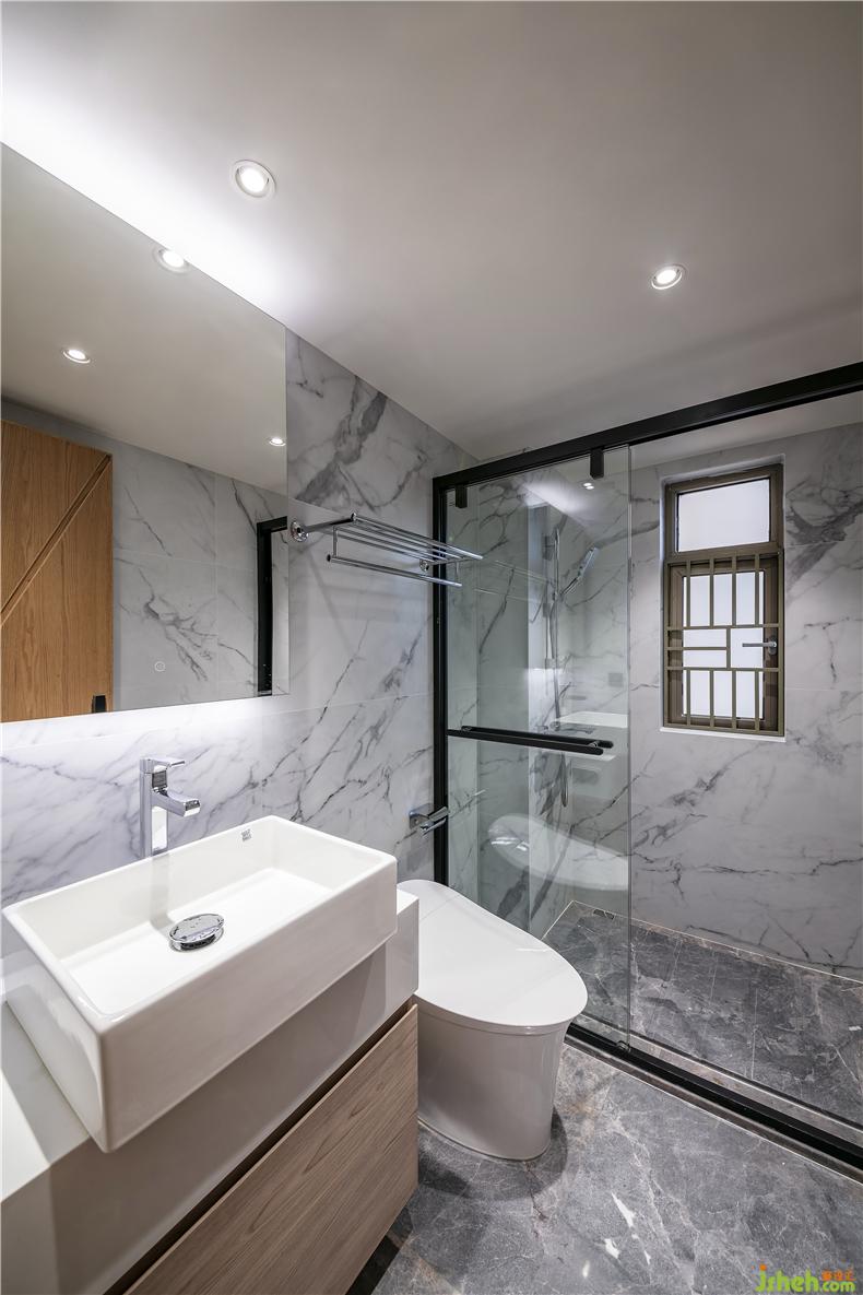 Dry and wet separation, dividing the functional areas. The overall marble pattern makes the bathroom fashionable.