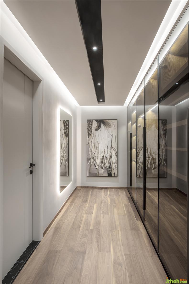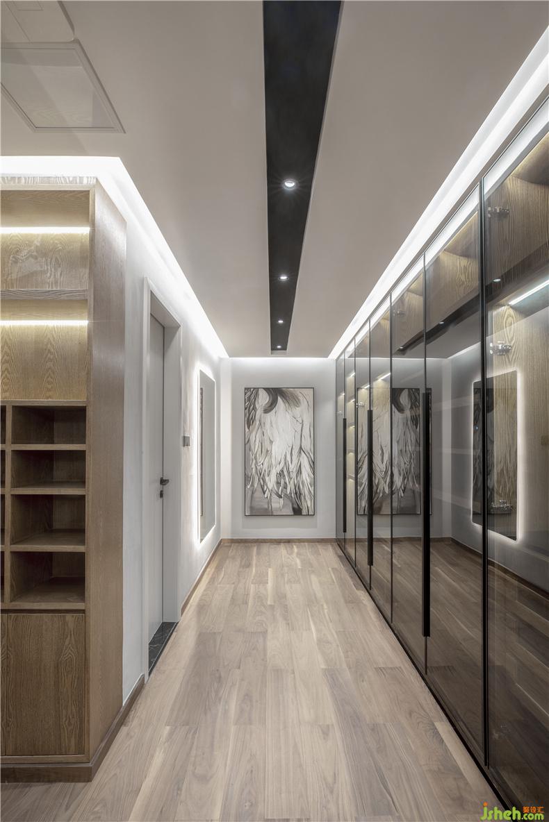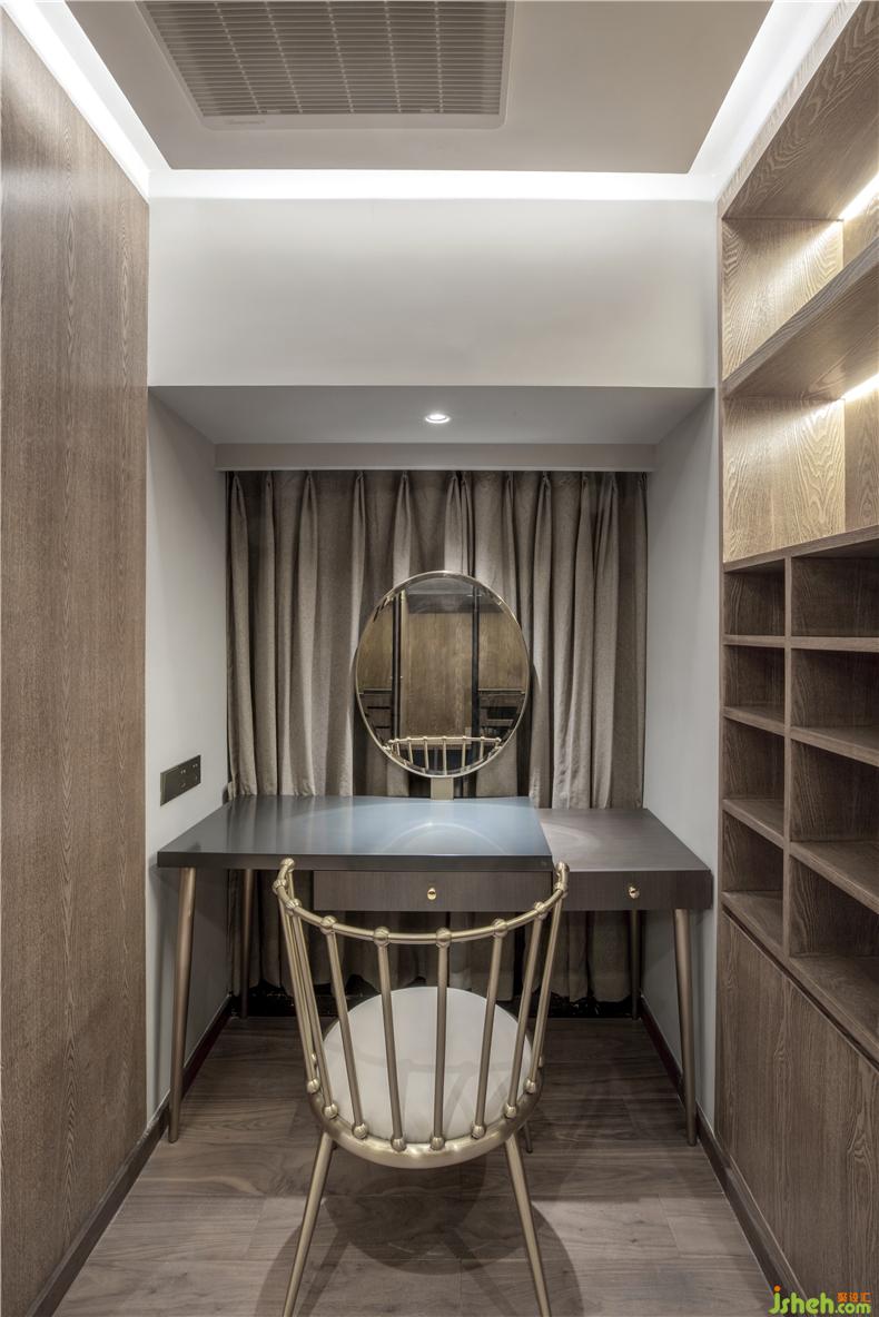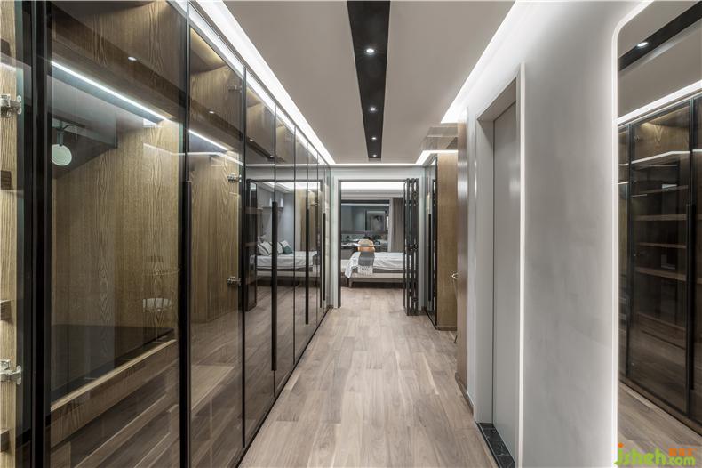 让原本空间不大的卧室拥有了主卫+更衣间+化妆台+的功能,灰玻隔断确保隐私又不影响通透性。