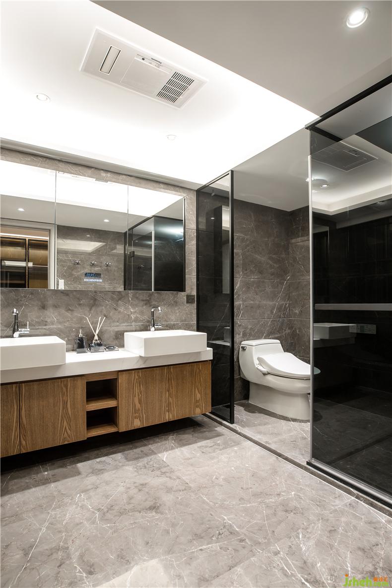 室内设计师整体卫生间明朗舒适,镶嵌浴缸与玻璃浴房,在实现设计形式美观统一的前提下,又满足不同的生活需求。