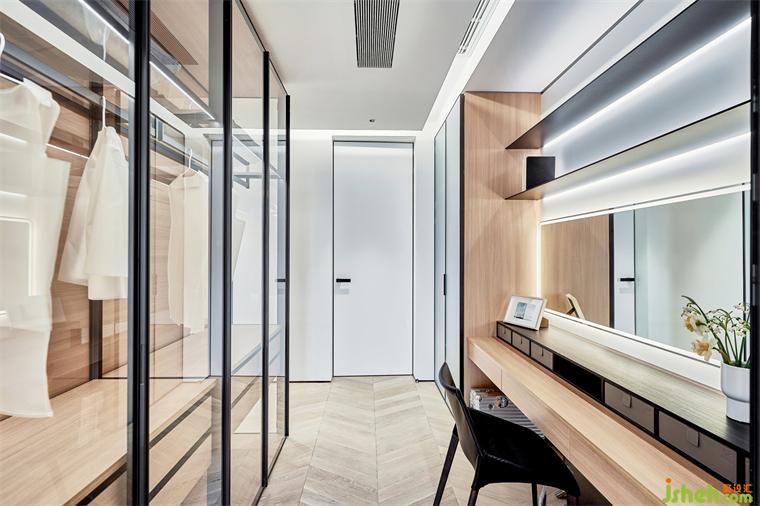 暖光、木色与开放衣帽间,皆是情绪表达的介质,彼此相互配合,默契融汇。进入思考的领域,卫生间以玻璃轻盈质感,别墅装饰设计打造空间的沉静氛围,于时光流动间,闭目、放松、疗愈。