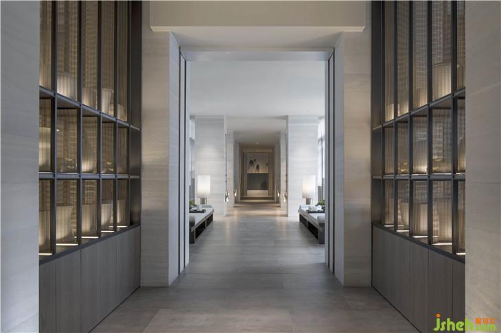 设计师在空间的回溯中探索本质与源泉,从干练的线条到艺术化的装饰,无一不透露着精致与唯美的气息。浓郁东方色彩的图案将神秘气息氤氲在空间里。前台的若翡翠玉坠般的艺术吊灯,菱形切割的表面流光溢彩,近看似月光下的湖面漾起的粼粼涟漪。自然的质感与艺术的气质在此融为一体。