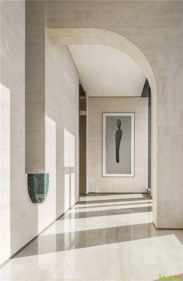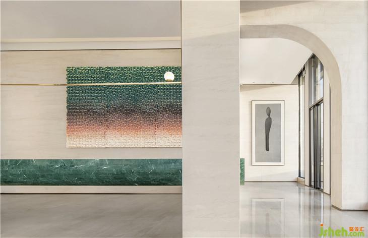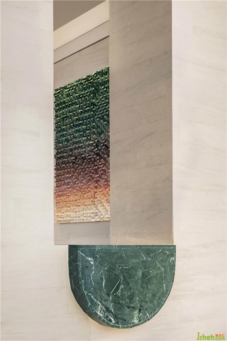 大理石是天然的水墨画,乱中有序的肌理经过抛光后润滑明亮,光泽度良好的金属与之相辅相成,高雅品味在翡翠绿大理石和轻盈金属的组合下内敛绽放。室内设计师