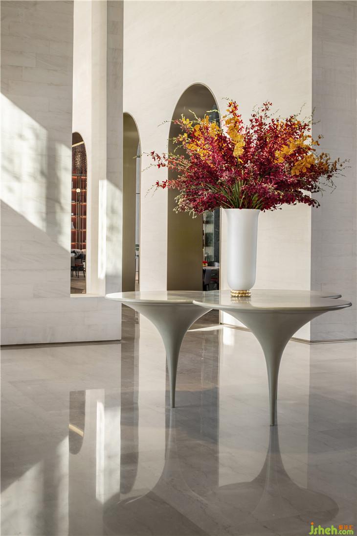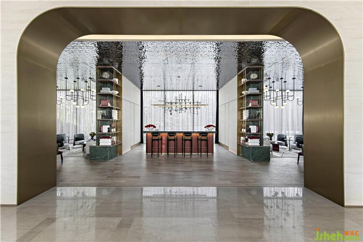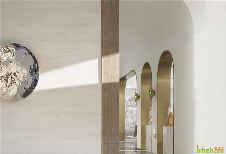 浅洽区将拱门元素运用到了极致,简洁利落的弧形内侧镶上了金边,传统元素与当代艺术的碰撞赋予拱门新时代的定义。