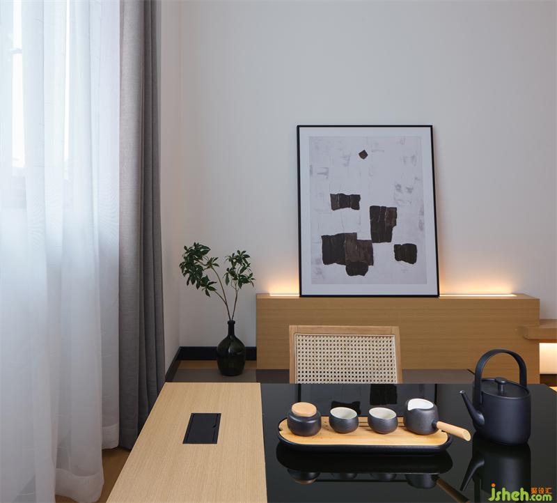 在现代室内设计的美学思维与中式结构的搭配下,显现出毫无违和的空间感和舒适美。