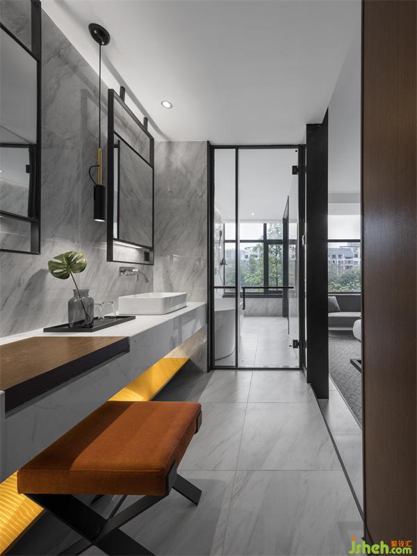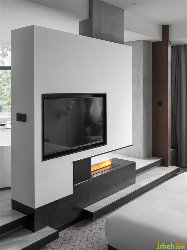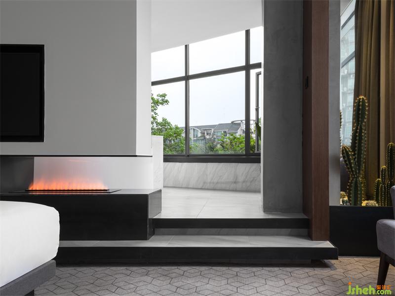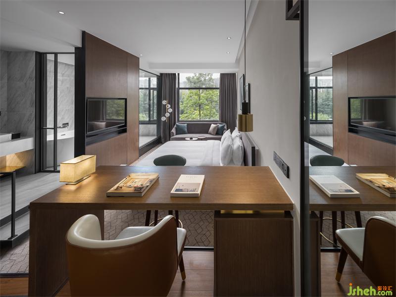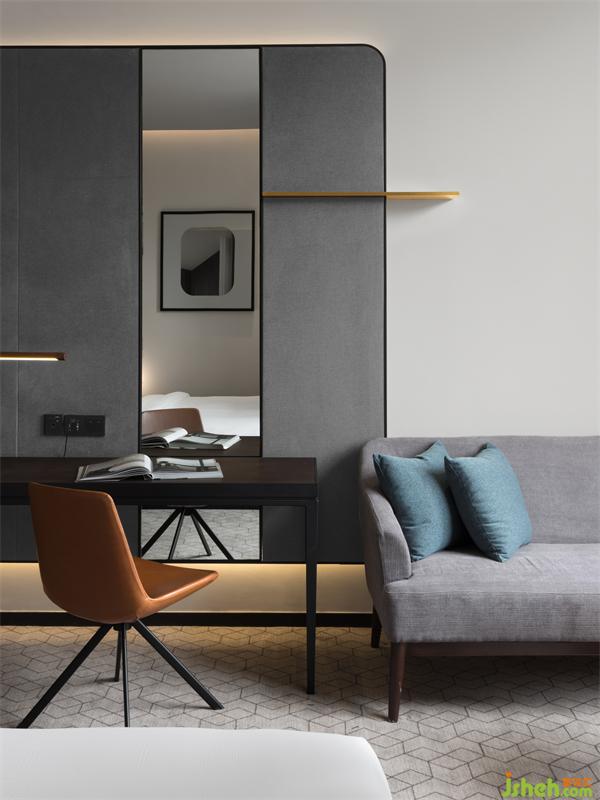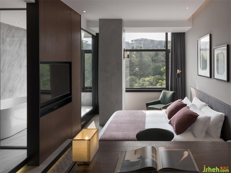 而房间中突兀的结构柱,原本是客房大忌,但“美化”后的巧妙运用,反而界定出客房内不同功能空间的关系,变废为宝,成就了空间整体节奏及韵律的和谐变化。