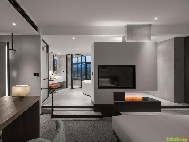 不刻意矫正、整合,而是迎合各房间的独特结构,保留甚至放大他们的异形特征,使每一间客房均呈现出不一样的姿态与韵味,给人以别样的新鲜感。
