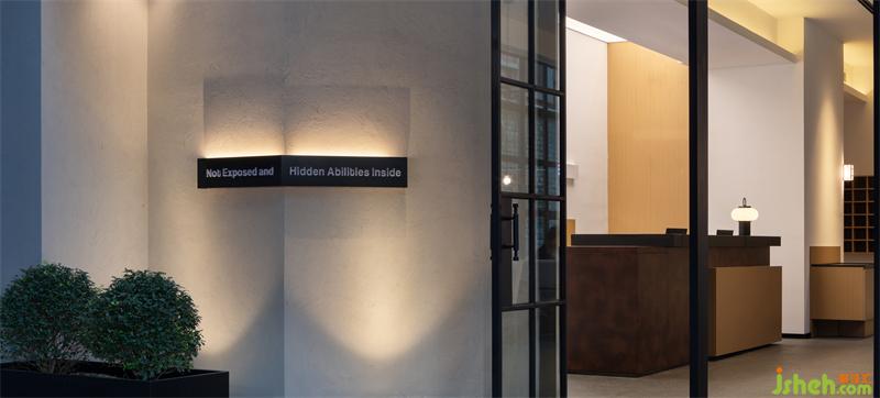 酒店设计被赋予了两种模式的切换——白天,充足的自然采光传递着酒店自然、亲和的品质,而夜里,温暖的发光体又在街道安静地树立一座让人有归属感的居所。整个建筑就如一处宁静温暖的景观,融洽而出彩。这个发光的盒子在老旧的城区展现着新的美丽,同时又保持着亲密感,传递品牌的温度。