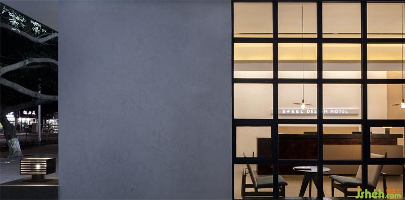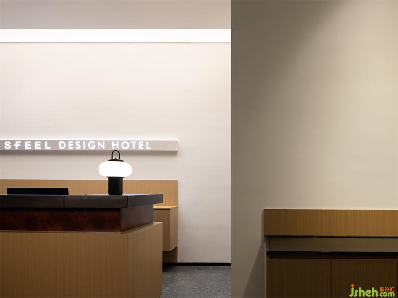 坐落于繁华的张公桥商圈,在烟火气息浓厚的闹市中,酒店简洁克制的立面,低调地传递着静谧温和的气质,正回应了S FEEL酒店品牌的slogan——“不露于外,惊艳于内”。简洁的白色墙面与玻璃的窗格,为一层接待区创造了通透开阔的视野,凸显出清晰、现代的视觉形象。