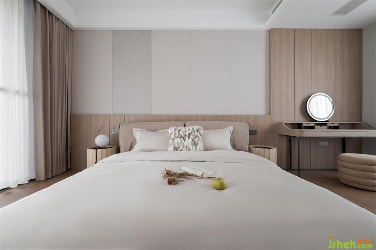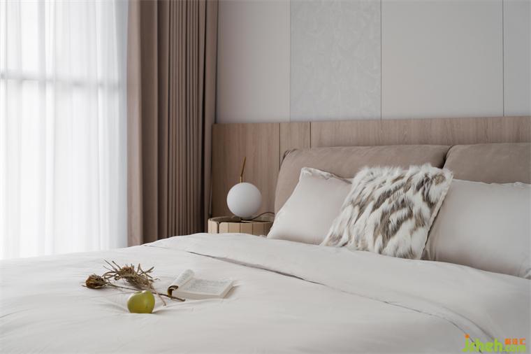 主卧空间充盈着光和宁静,层次分明的床品织物布置,营造出暖意和质感。