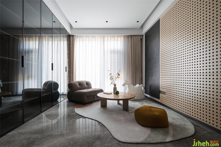别墅装修设计整个三层都是业主的私人空间,衣帽间、书房、主卧都在一层楼,相互联通的空间,开放的氛围,贯穿整层空间,十分舒适惬意。