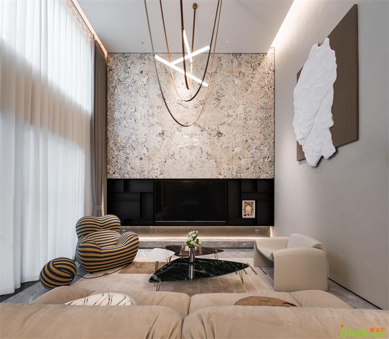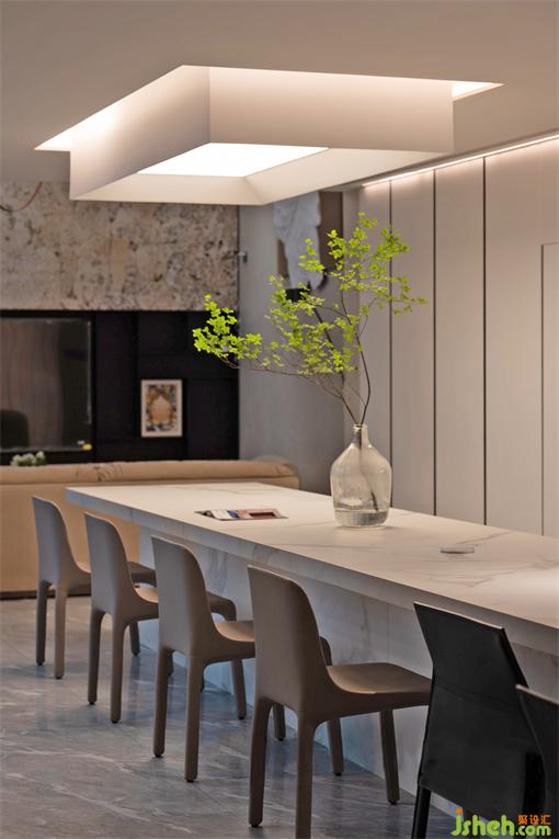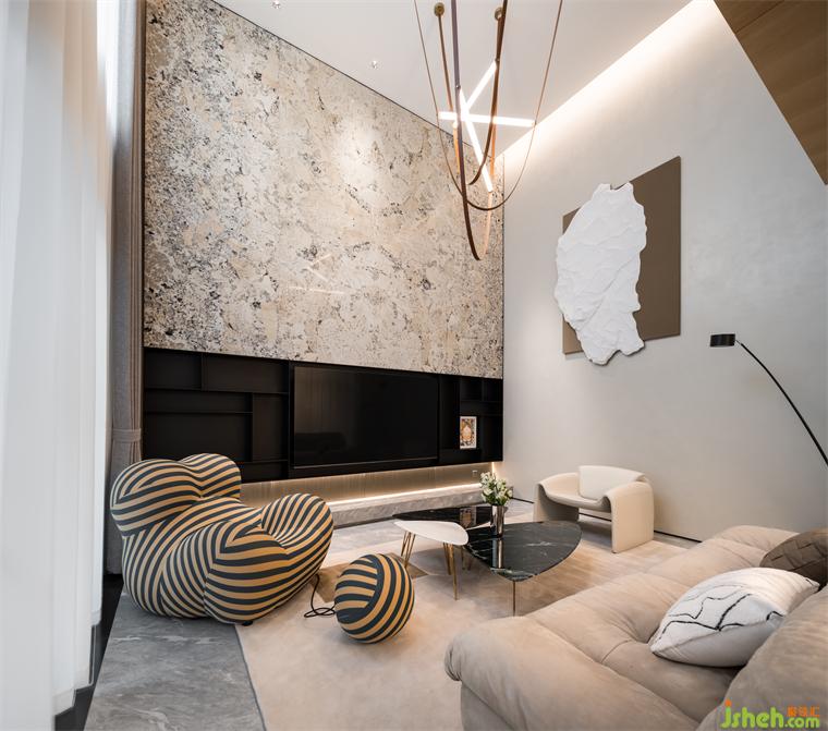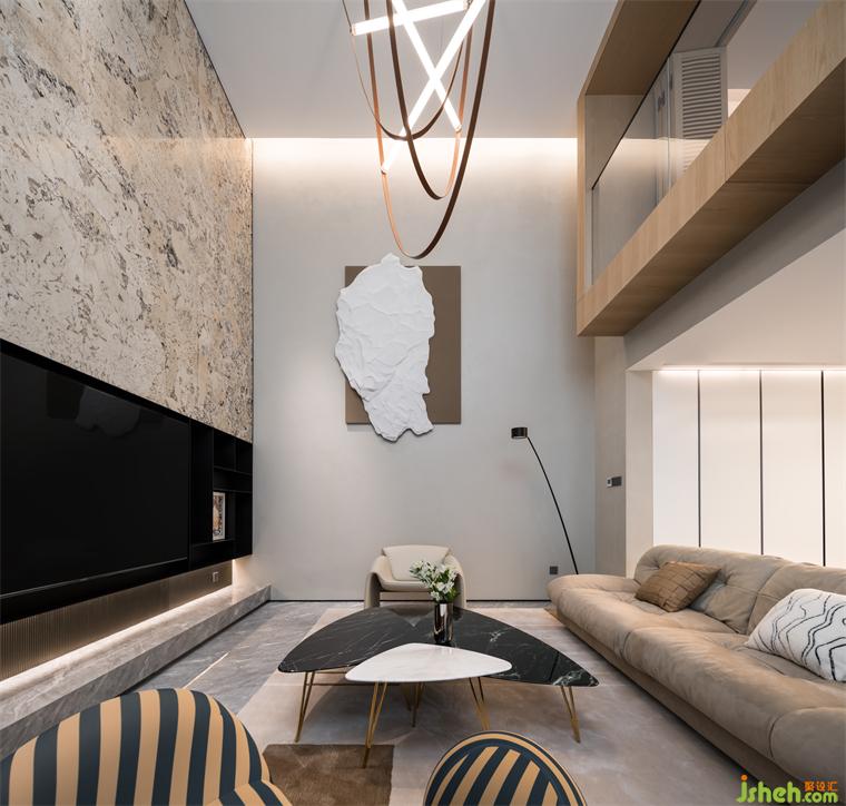 会客厅宽敞的极简皮带灯的点缀下,形成浪漫的触点。珠海别墅设计从细腻材质对比和空间尺度的收放入手,调动起居者对于美好生活丰富而立体的的感知。通过诗意而富有温度的艺术语言描摹空间气度。优越的居住体验与极致的美学沉淀逐一贴合,生活里的至情至味,悠长而辽远。