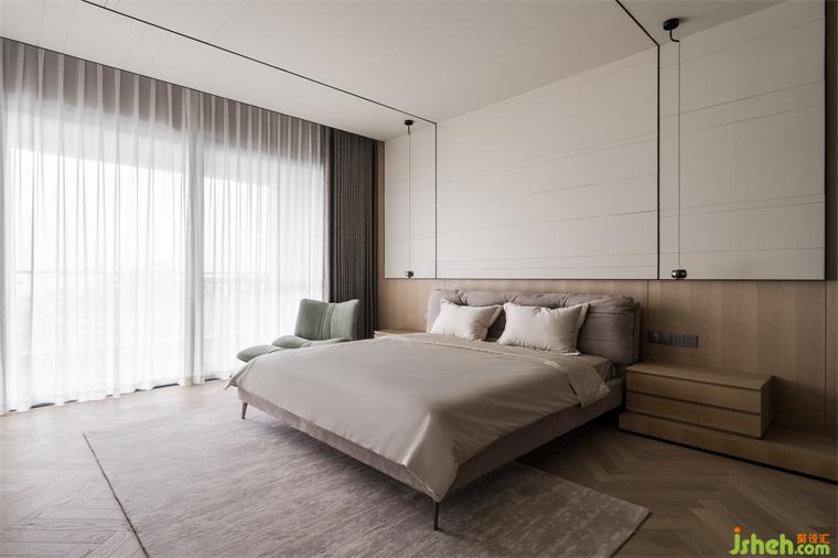 在卧室被唤醒的日常,是充分拥抱自我和家人之后的满足,当你手捧咖啡,撞见阳光正透过一扇扇窗户,铺向室内,关于家的故事,就此展开:晨曦透过纯白窗帘,给卧室打上一层柔光,从柔软的床铺蔓延至整个空间,品味着这份静谧与舒适,心境透亮而明媚。