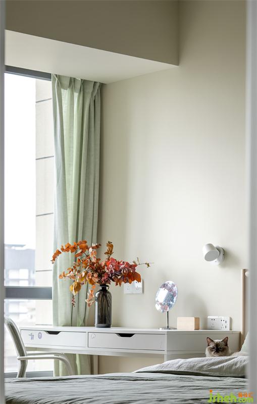 即使在客厅设有专门的玩乐区,儿卧的趣味布置依然未减少,这里摆放着小朋友专用迷你家具,小小的柜子里放满漂亮的裙子或是最爱的玩具,某个空间可能还藏着她舍不得分享给小伙伴的宝藏,而利用儿卧墙体外移形成的凹墙定制了超薄实木陈列架,上面则摆放着睡前最爱的绘本故事。明黄的窗帘,微粉的墙壁,夕阳时,窗外的阳光偷溜进来,整个房间像被点燃了一样,盈满暖暖的光,这里就是她的城堡,明媚,有趣,安心。