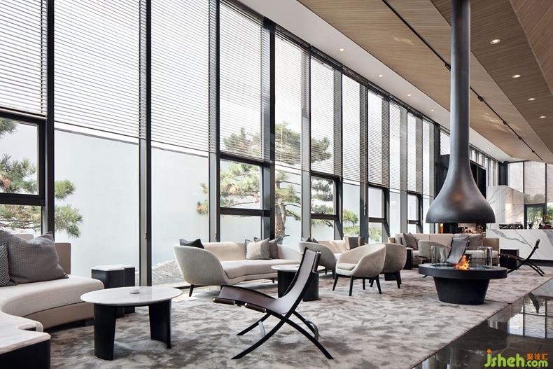 在建筑到室内的空间构想中,我们采取了北实南虚的处理手法,室内设计师北面以实墙隔断噪音,南面则引入景观,忽略室内外边界,穿插内外庭院,实现不断变化的连接与互动。