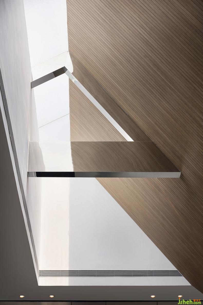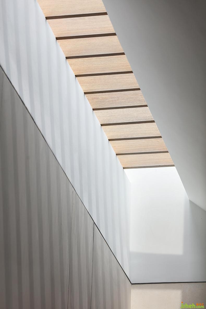 抬头仰望,来自天窗的光线配合建筑,纯净而唯美。随着时间的推移、云影的变化,室内设计师以最基本的方式表达着人与自然的关系。
