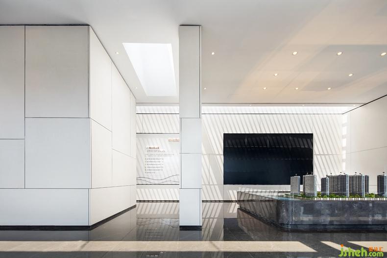 步入“阳光宣言”区,于光影中体会绿地阳光宣言,光与空间,墙体,地面奇妙的交错在一起。一路行至沙盘区,与自然亲近交流,对生活的乐观憧憬得以进一步表达。