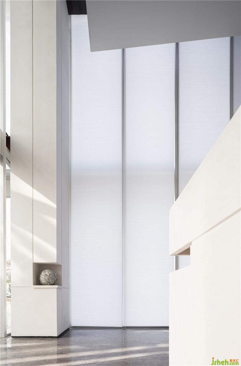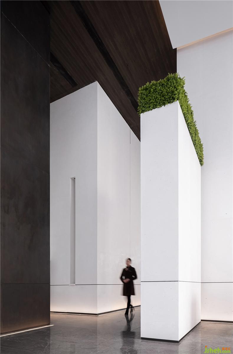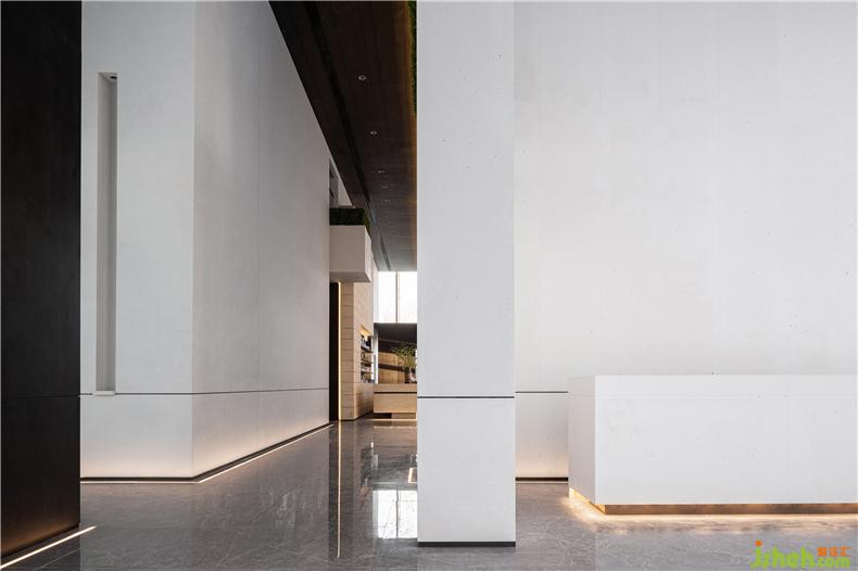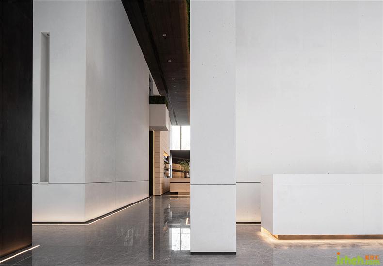 在展陈营销类项目中,动线是推敲设计的重要线索。本案中,“线性动线+竖向空间”的组合,室内设计师不但规避了原始场地的限制,且调动原有空间的资源,如柱子等,组织出全新的、生动的整体空间关系及品质属性。空间处于整体关系中,局部空间不是孤立存在的,合理稳健的动线设计,是优化空间资源且将其整体化的核心方式。