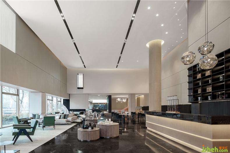 简洁的线条,基础且高级的大地色系,搭配大块面设计手法,打造一个现代闲适的多元化场景体验空间。室内设计师洁白简约的接待台,以圆滑的线条型,呼应墙面的弧形,体现徐州草编艺术的艺术吊饰,为空间注入灵动的文化笔墨,使来者舒适且轻松。