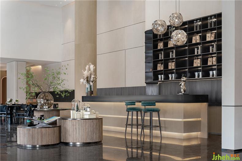 在设计中,我们在休闲洽谈区中置入咖啡吧,弱化传统售楼处的商务属性,室内设计师更多强调人在空间内产生交流、互动的社交属性,通过一个个亲近的社交场景漫谈现代格调生活,让空间的感觉自然流动。未来它可能会留存成为社群聚合的连接点,长久地融进人们日常生活的诗学,香气氤氲。