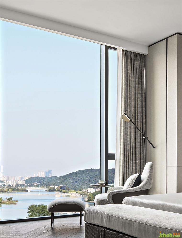 儿童房将梅溪湖的湖水蓝引入室内,寥寥几笔描摹出空间的生命与活力。老人房以更加沉稳雅致的色调与叙事,道出历尽浮华喧嚣之后内心的丰富平和。