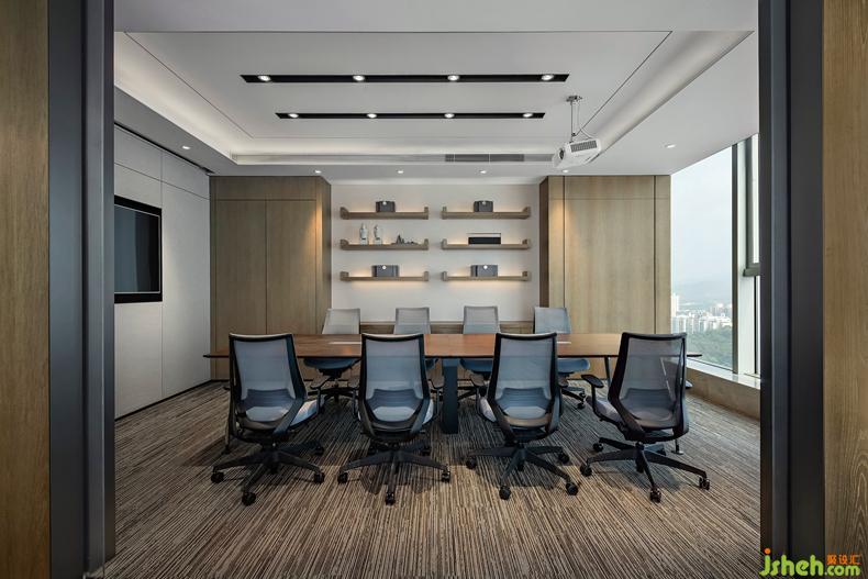 会议室设置在开放办公区域旁边,方便与会者快速直接到达。办公室设计会议室拥有充足的自然光线及窗外极佳视野,将压抑和沉闷一扫横而空。另外,会议室安装了视频会议系统及智能办公系统,彰显灵活、严谨高效的工作态度。